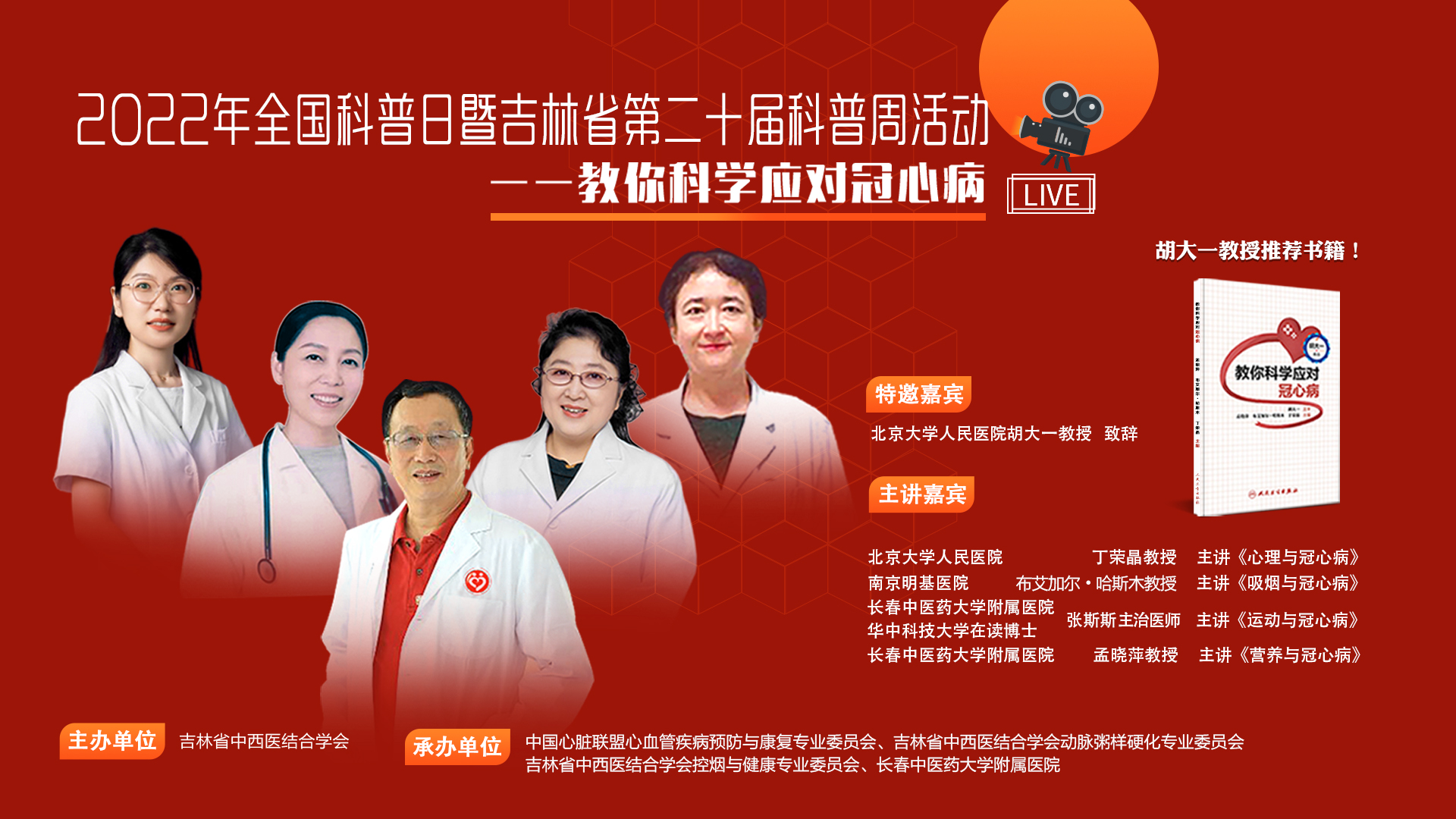 2022年全国科普日暨吉林省第二十届科普周活动——教你科学应对冠心病于明天下午13:30-15:00云端开幕,将通过线上进行同步视频直播。观看直播可参与14:40分线上抽奖活动抽取50名获得胡大一教授推荐…
