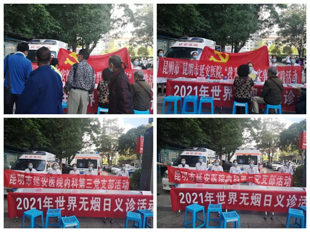 今年5月31日是第34个世界无烟日,主题是“承诺戒烟 共享无烟环境”,为提高社会对吸烟危害的认识,关爱生命健康,扎实推进医院党史学习教育,开展“我为群众办实事”实践活动。昆明市延安医在门诊…