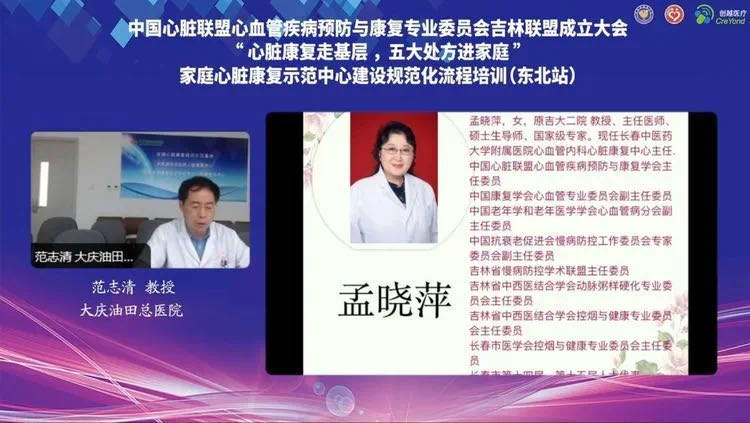 8月14日晚19:00在美丽的长春举办了“中国心脏联盟心血管疾病预防与康复专业委员会吉林联盟成立大会暨心脏康复走基层,五大处方进家庭、家庭心脏康复中心建设规范化流程培训走进东北站”学术会议,吉林联盟成立大会由丁荣晶教授主持,此次会议采取线上线下相结合的模式。