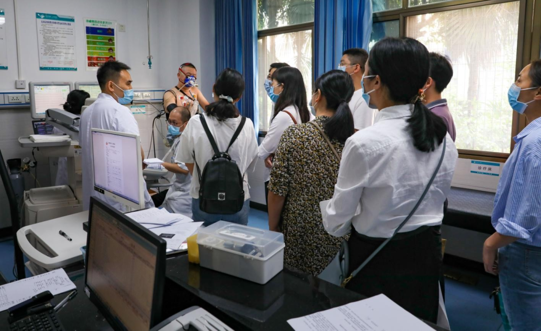 联盟成立后,随后开展了湖南省级继续教育项目心脏康复适宜技术基层医院培训, 并由湘雅医院刘遂心教授、中山大学附属第一医院冷秀玉教授线上授课及湘雅二医院许丹焰教授、李韧教授、我院青年才俊王懿教授、何芳教授等现场多方面讲解传授心脏康复各种评估治疗技术以及心脏康复如何高质量起步、DRG 付费下如何开展心脏康复等课程。理论培训课后,我们又在心内一区(心脏康复)开展了心脏康复工作坊, 现场实操展示了我院今年率先在湖南省开展的新技术,如高危心血管患者风险评估“四合一”(运动心电+运动心肺+运动心排+运动负荷超声)技术,大家参观后受到了许丹焰教授的赞赏和与会的各位主任认可。