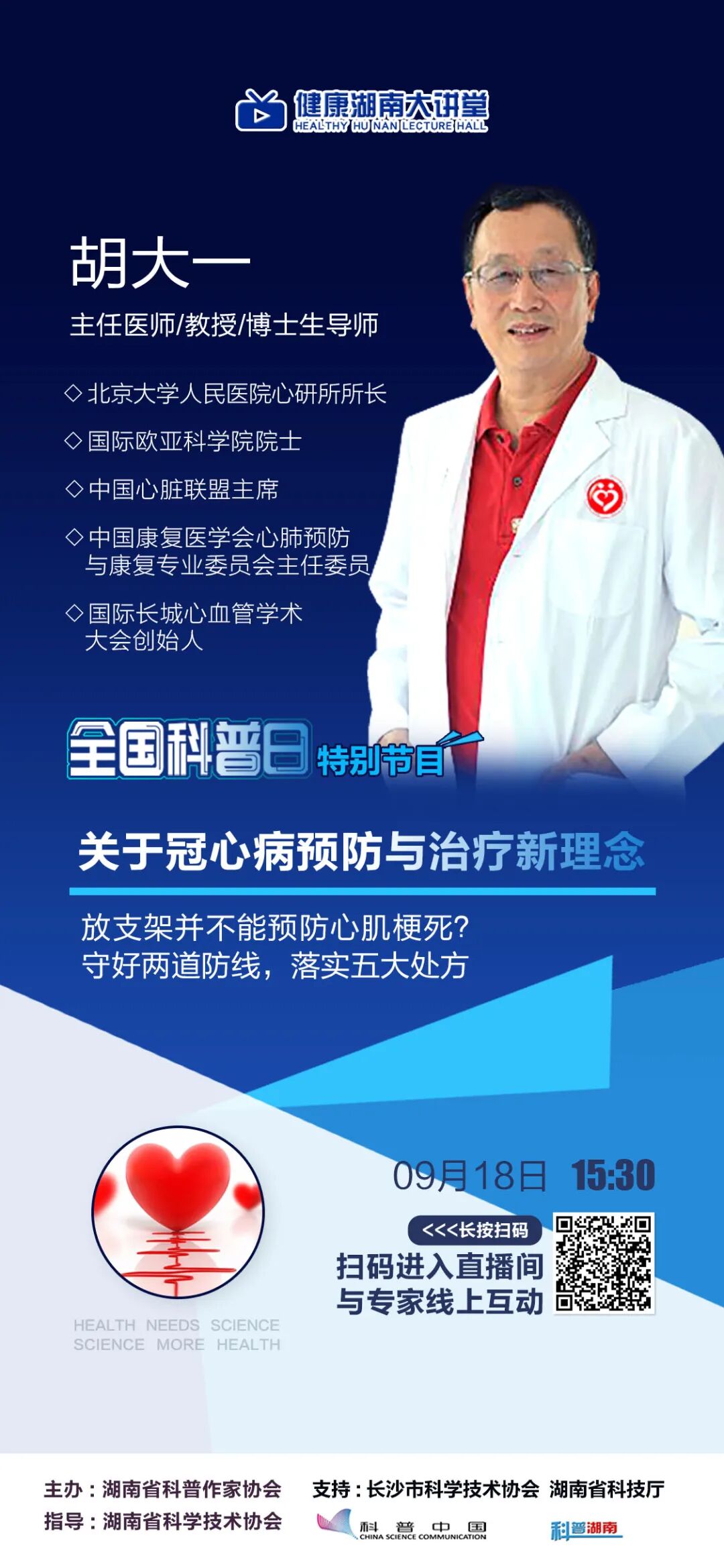 我国著名心血管专家胡大一教授主讲《关于冠心病预防与治疗新概念》